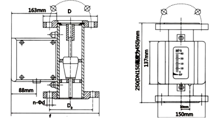 | 公稱通徑(mm) | 儀表耐壓 | D。 | D | F | n-φd |