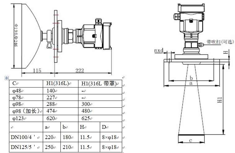 | H | 喇叭天線Φ98mm/不銹鋼316L | ||||||||||||||||||